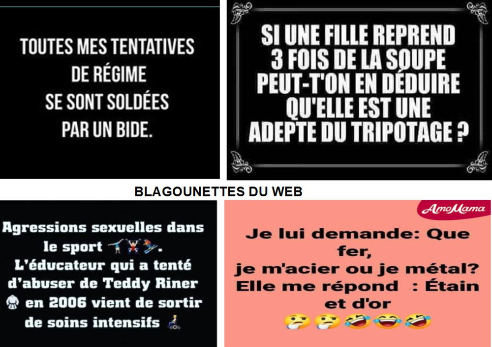 Humour Humour DF 3 novembre 2025 DF01. Humour – BlagounettesDF02. Humour – L’OzoneDF03. Humour – Chantons sous La PluieDF04. Humour – La Vie en ImagesDF05. Humour – Le RhumDF06. Humour – Va Comprendre !DF07. Humour – Les PelousesDF08. Humour – Votre Attention ! Précédent Rigole Un Peu Laisser un commentaire Annuler la réponseVotre adresse e-mail ne sera pas publiée. Les champs obligatoires sont indiqués avec *Nom * E-mail * Site web Commentaire Δ